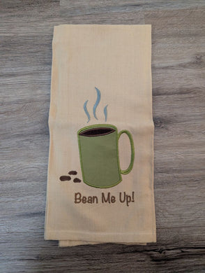 "Bean Me Up" Kitchen Tea Towel brand new embroidered tea towel, "Bean Me Up" with mug- Regular price