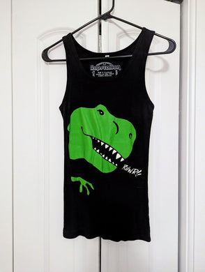 "Rapscallion" Women's Ribbed Dinosaur Tank Top Women's ribbed tank top/shirt, Medium, black with green dino Women's - M- Regular price
