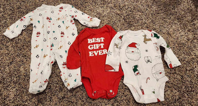 1 thin Christmas sleeper. 2 long sleeve onsies. Newborn- Regular price
