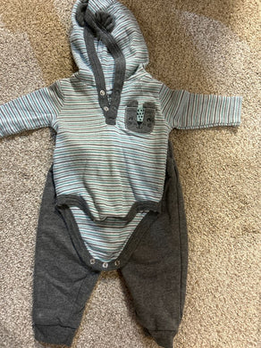 0-3m boy 2 piece long sleeve and pants 0-3m boy 2 piece long sleeve with hoodie and matching pants 3 Months- Regular price