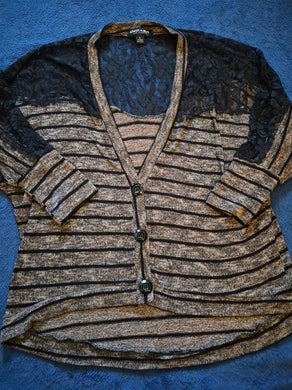 About a Girl Womens Brown and Black Lace Sleeve Cardigan with Stripes Women's - L- Regular price