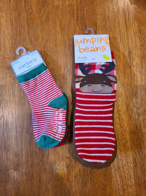 12-24 month Carters 2 pack socks with grips and Ju Beans slipper socks in Christmas/holiday patterns 12 Months