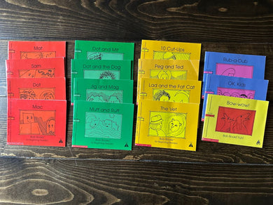 15 Bob books. 12 from set 1 for beginning readers 3 from Level A set 2 Early Reader