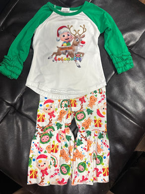 12-18M CoCoMelon North Pole X-Mas outfit Long sleeve CoCoMelon ruffle top w/ matching flare leg Xmas pants 12 Months