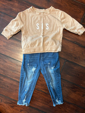 12-18mo Sis sweatshirt with distressed denim 12 Months- Regular price
