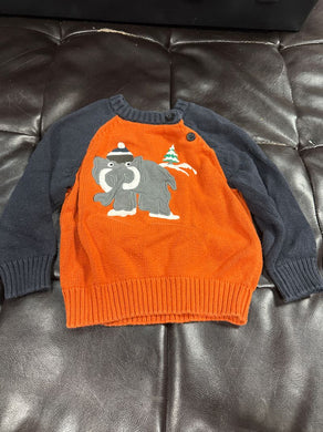 12-18M Gymboree Elephant wearing Toboggan in snow Long sleeve blue and orange sweater w/ elephant thick material 12 Months