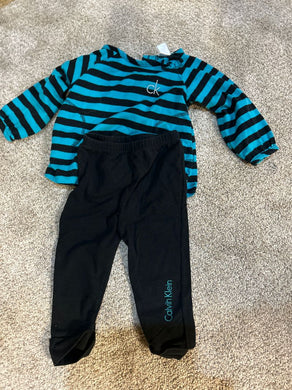 12m girl Calvin Klein long sleeve 2 piece outfit Turquoise and black matching long sleeve and pants outfit 12 Months