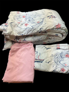 3 piece comforter set - one side is solid pink and Other side has mermaids & 2 pillow cases Full
