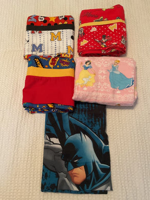 5 standard size pillow cases Minnie/mickey/batman/princesses/super/wow words- Regular price