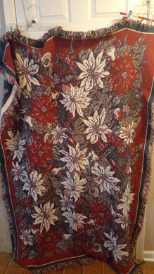 Afghan fringed throw- spot cleaned red and white poinsetta - approx. 45" w x 67" long Blanket- Regular price