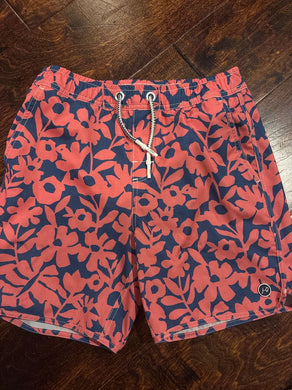 Johnnie O Swim trunks Light red and navy floral mesh lined swim suit 12- Regular price