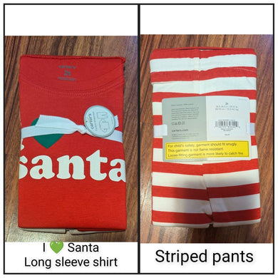 NWT Carter's I heart Santa Christmas pajamas unise Cotton PJs set. Red shirt w message. Red & white striped pants 2T- Regular price