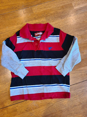 Wrangler layered look long sleeve polo, black/red stripes 2T- Regular price