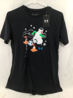 Under Armour black cotton tee/snow soccer NWT MSRP $25 YL 14- Regular price