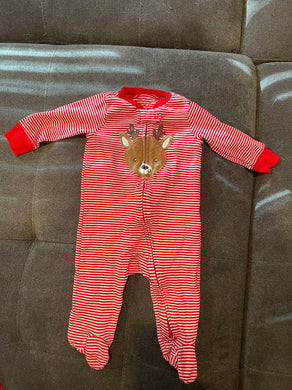 Carter's Carter's red striped Christmas reindeer footed pajamas, size 6 mo 6 Months