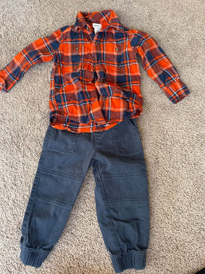 Carters, jumping beans Plaid button up and navy pants 2T
