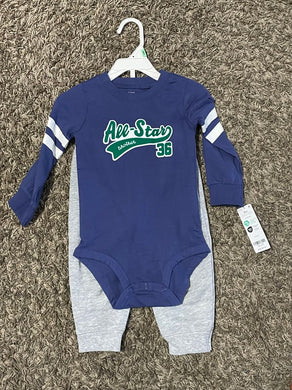 NWT - Carters 2pcs - grey pants and blue bodysuit With green accent All Star Brother 18 Months