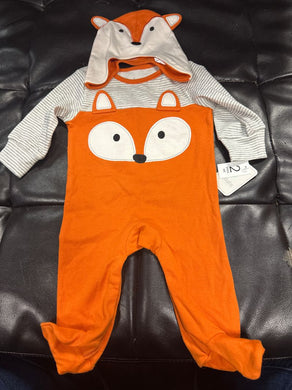 NWT 0-3M fox 2 piece outfit w/ matching hat NWT Long sleeve fox footed outfit w/ snaps & matching fox hat Newborn