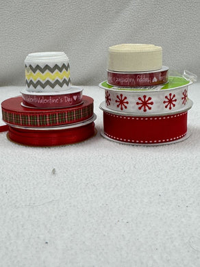 33 rolls of Christmas themed ribbon Many are still NIB / not used- Regular price