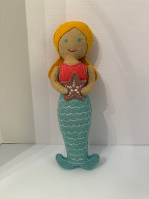 Boutique felt Mermaid Tooth Fairy pillow tooth pocket behind starfish, 17 inches tall Plush Toys- Regular price
