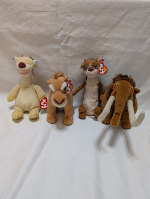 Ty Beanie Babies - Ice Age Characters Sid, Diego, Buck & Manny: tags not mint, Manny's missing Plush Toys- Regular price