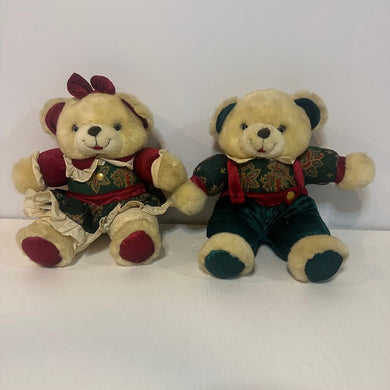 Vintage Holiday Plush Bears, Christmas Teddy, Boy Bear W/ Green Outfit, Girl Bear w Matching Dress Plush Toys- Regular price
