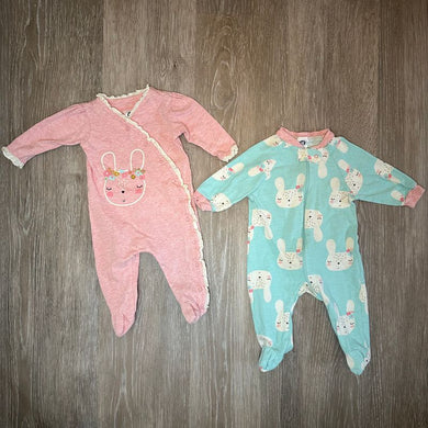Gerber, 0-3mo, Sleepers Pink Snap Up, Blue Zip Up w/ Bunnies Newborn- Regular price