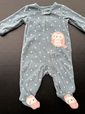 Carters footed pajamas, 0-3 months Fleece, blue, polka dot, bird 3 Months- Regular price