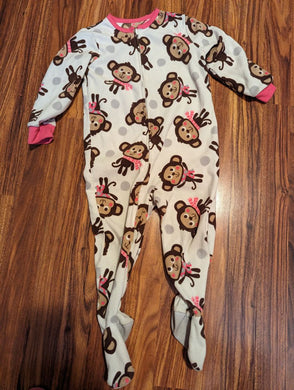 Carter's fleece Zipfront footed monkey pajamas White w monkeys and polka dots, pink trim 2T