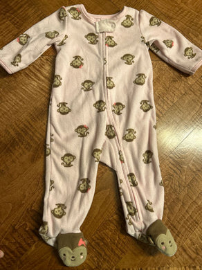 Carters footed pajamas, zipper, 3-6 months Pink with monkeys, monkey feet, fleece 3 Months- Regular price