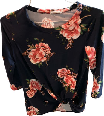 Reb and J Navy pink floral top Women's Med 8-10- Regular price