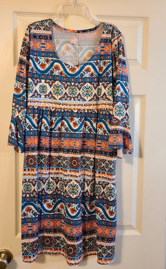 Flirty Pink, 3/4 length ruffle sleeve, colorful pattern, polyester and spandex Women's XL 16- Regular price