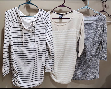 Aglow / Motherhood. Maternity. Size Large. 1 long-sleeved, 2- 3/4 sleeve ruched shirts Women's Large 12-14