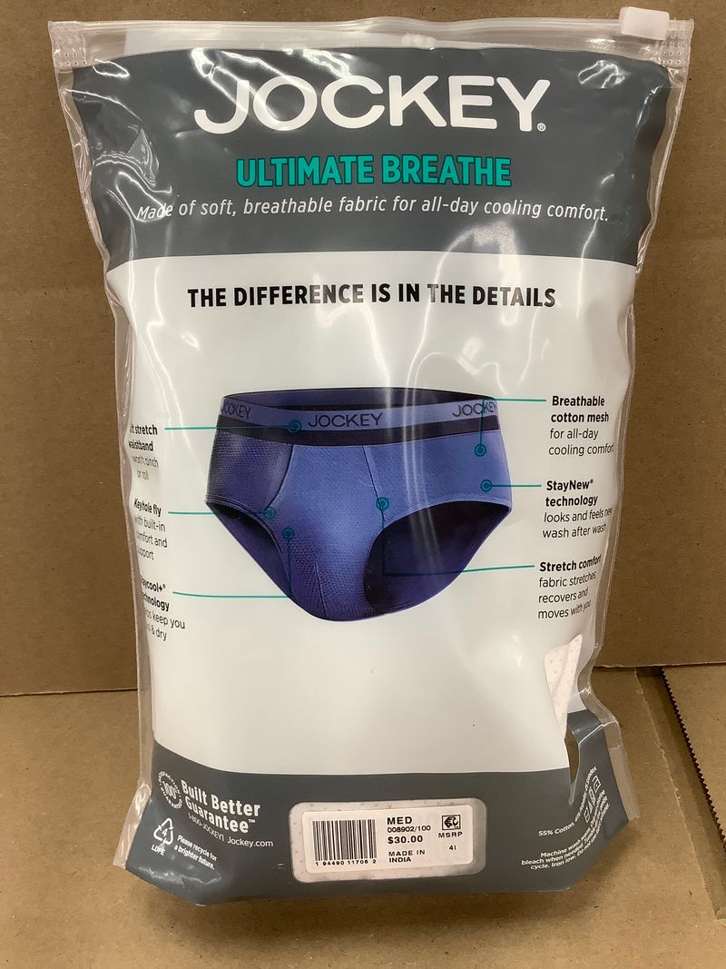Jockey New, Opened Package, 4 Pack Breathable White Briefs Men's - M