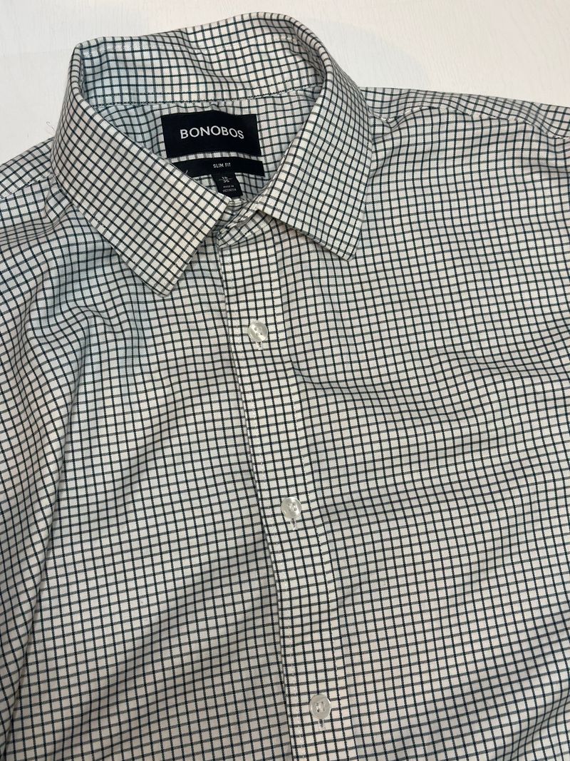Bonobos, Size 16/36, Long Sleeve Button Down Shirt , Wintergreen/White Plaid, Everyday Casual Slim by Bonobos Men's - L