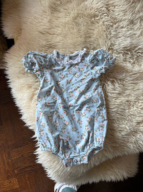Stitchy fish bubble romper with adorable floral print and Peter Pan collar. Tagged 6 mo. 6 Months- Regular price