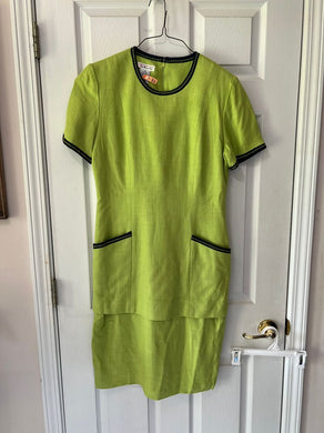 Talbots size 8, SMR Kiwi green with navy trim dress, lined, front trimmed pockets Women's 8- Regular price