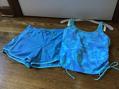 Catzimi Size 12 Aqua/Blue Swimsuit Size 12 Shorts & Top Tankini Women's - L