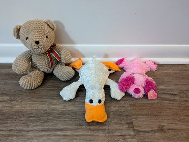 Various medium sized stuffed animal lot of 3 bear, duck, and dog stuffed animals, various sizes 8-12 inches Plush Toys- Regular price