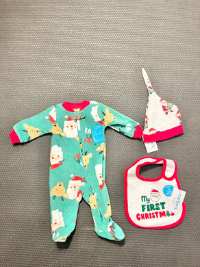 Carters Christmas pajamas outfit Nwt fleece 2 way zipper includes hat n bib Newborn- Regular price