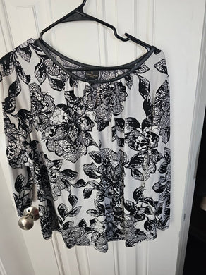 Worthington, size 1X Black/White floral print long sleeve dress top Women's - XXL- Regular price
