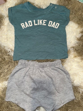 Grayson Mini rad like dad tshirt with gray sweat shorts 18 Months