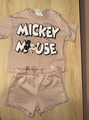 H&M cream mickey mouse tshirt and shorts 6 Months