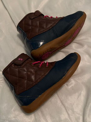 Girls boots - navy and brown with pink laces 7 (Toddler)- Regular price