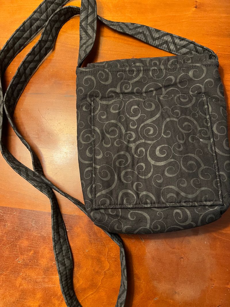 Black Fabric Crossbody Purse 6 inch wide x 8 inch tall purchased from art show