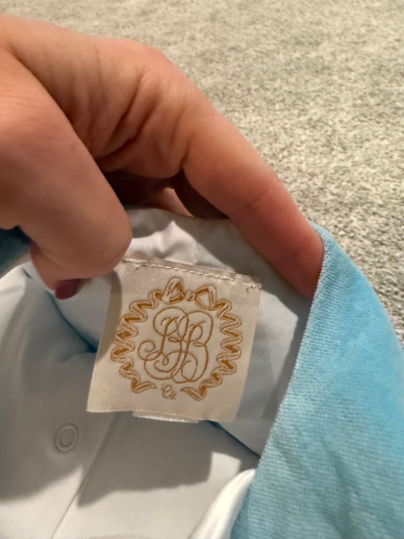 TBBC Boutique Jon Jon with Peter Pan Collar onesie Blue Velvet - Like New - Gorgeous piece! 12 Months