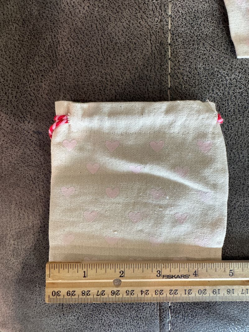 26 Small canvas drawstring pouch 10 red heart pouches, 16 tiny pink heart. Other side, tic tac toe