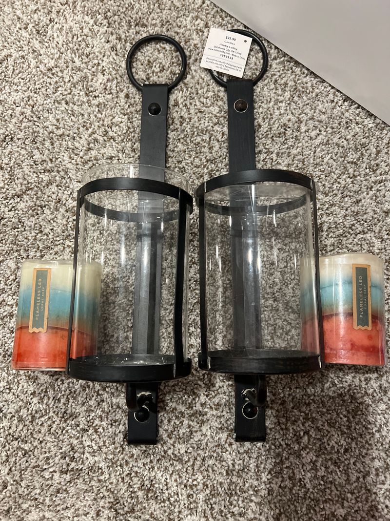 Hobby Lobby 2 sconces approx. 17 in and two 3.5 in. flameless candles
